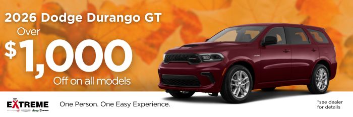 At Extreme Dodge Chrysler Jeep Ram, we strive to make owning a 2025 Dodge Durango as accessible and rewarding as possible. We offer a variety of financing plans tailored to suit your individual needs, ensuring you can drive away in a Durango without financial constraints. Our dealership frequently features special offers and exclusive deals, highlighting the exceptional value available at our location.