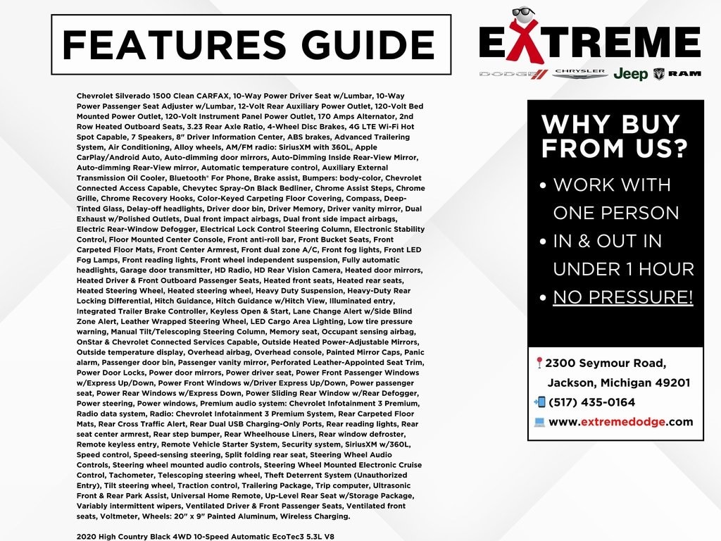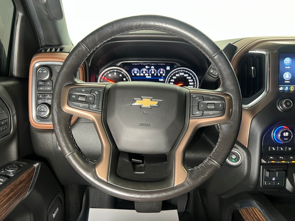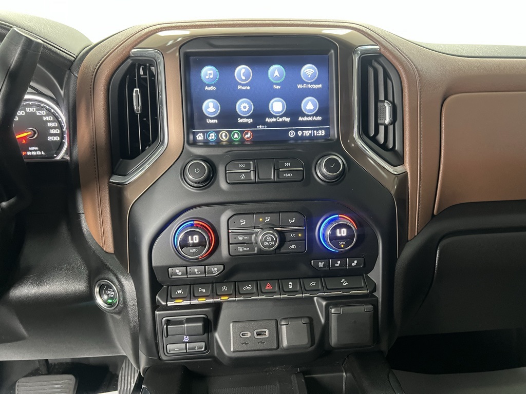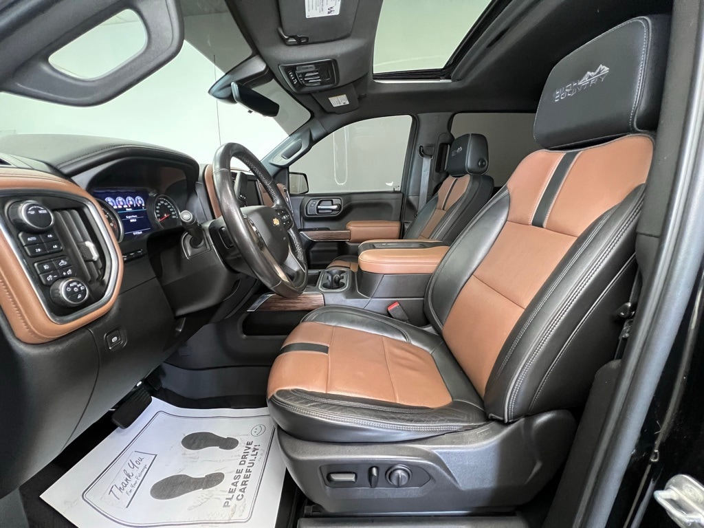 Chevrolet Silverado 1500 Clean CARFAX, 10-Way Power Driver Seat w/Lumbar, 10-Way Power Passenger Seat Adjuster w/Lumbar, 12-Volt Rear Auxiliary Power Outlet, 120-Volt Bed Mounted Power Outlet, 120-Volt Instrument Panel Power Outlet, 170 Amps Alternator, 2nd Row Heated Outboard Seats, 3.23 Rear Axle Ratio, 4-Wheel Disc Brakes, 4G LTE Wi-Fi Hot Spot Capable, 7 Speakers, 8" Driver Information Center, ABS brakes, Advanced Trailering System, Air Conditioning, Alloy wheels, AM/FM radio: SiriusXM with 360L, Apple CarPlay/Android Auto, Auto-dimming door mirrors, Auto-Dimming Inside Rear-View Mirror, Auto-dimming Rear-View mirror, Automatic temperature control, Auxiliary External Transmission Oil Cooler, Bluetooth® For Phone, Brake assist, Bumpers: body-color, Chevrolet Connected Access Capable, Chevytec Spray-On Black Bedliner, Chrome Assist Steps, Chrome Grille, Chrome Recovery Hooks, Color-Keyed Carpeting Floor Covering, Compass, Deep-Tinted Glass, Delay-off headlights, Driver door bin, Driver Memory, Driver vanity mirror, Dual Exhaust w/Polished Outlets, Dual front impact airbags, Dual front side impact airbags, Electric Rear-Window Defogger, Electrical Lock Control Steering Column, Electronic Stability Control, Floor Mounted Center Console, Front anti-roll bar, Front Bucket Seats, Front Carpeted Floor Mats, Front Center Armrest, Front dual zone A/C, Front fog lights, Front LED Fog Lamps, Front reading lights, Front wheel independent suspension, Fully automatic headlights, Garage door transmitter, HD Radio, HD Rear Vision Camera, Heated door mirrors, Heated Driver & Front Outboard Passenger Seats, Heated front seats, Heated rear seats, Heated Steering Wheel, Heated steering wheel, Heavy Duty Suspension, Heavy-Duty Rear Locking Differential, Hitch Guidance, Hitch Guidance w/Hitch View, Illuminated entry, Integrated Trailer Brake Controller, Keyless Open & Start, Lane Change Alert w/Side Blind Zone Alert, Leather Wrapped Steering Wheel, LED Cargo Area Lighting, Low tire pressure warning, Manual Tilt/Telescoping Steering Column, Memory seat, Occupant sensing airbag, OnStar & Chevrolet Connected Services Capable, Outside Heated Power-Adjustable Mirrors, Outside temperature display, Overhead airbag, Overhead console, Painted Mirror Caps, Panic alarm, Passenger door bin, Passenger vanity mirror, Perforated Leather-Appointed Seat Trim, Power Door Locks, Power door mirrors, Power driver seat, Power Front Passenger Windows w/Express Up/Down, Power Front Windows w/Driver Express Up/Down, Power passenger seat, Power Rear Windows w/Express Down, Power Sliding Rear Window w/Rear Defogger, Power steering, Power windows, Premium audio system: Chevrolet Infotainment 3 Premium, Radio data system, Radio: Chevrolet Infotainment 3 Premium System, Rear Carpeted Floor Mats, Rear Cross Traffic Alert, Rear Dual USB Charging-Only Ports, Rear reading lights, Rear seat center armrest, Rear step bumper, Rear Wheelhouse Liners, Rear window defroster, Remote keyless entry, Remote Vehicle Starter System, Security system, SiriusXM w/360L, Speed control, Speed-sensing steering, Split folding rear seat, Steering Wheel Audio Controls, Steering wheel mounted audio controls, Steering Wheel Mounted Electronic Cruise Control, Tachometer, Telescoping steering wheel, Theft Deterrent System (Unauthorized Entry), Tilt steering wheel, Traction control, Trailering Package, Trip computer, Ultrasonic Front & Rear Park Assist, Universal Home Remote, Up-Level Rear Seat w/Storage Package, Variably intermittent wipers, Ventilated Driver & Front Passenger Seats, Ventilated front seats, Voltmeter, Wheels: 20" x 9" Painted Aluminum, Wireless Charging.