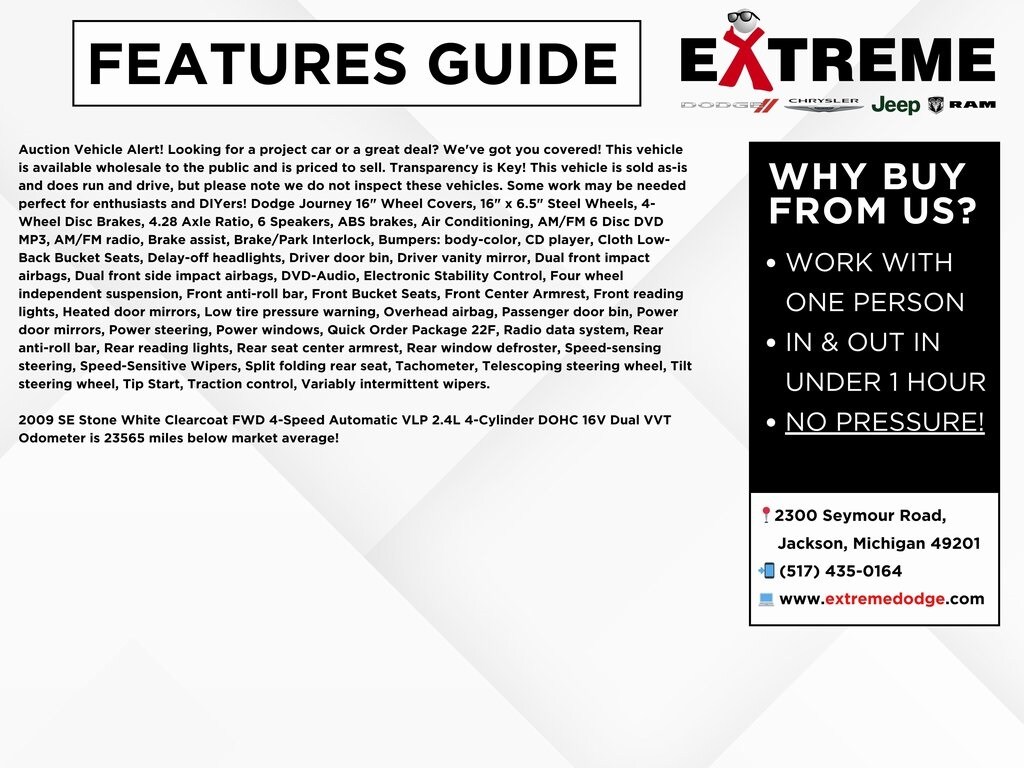 2009 SE Stone White Clearcoat FWD 4-Speed Automatic VLP 2.4L 4-Cylinder DOHC 16V Dual VVT