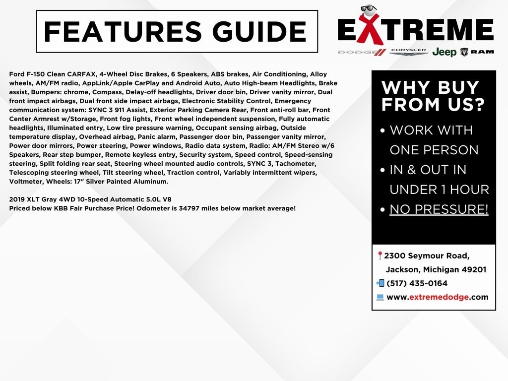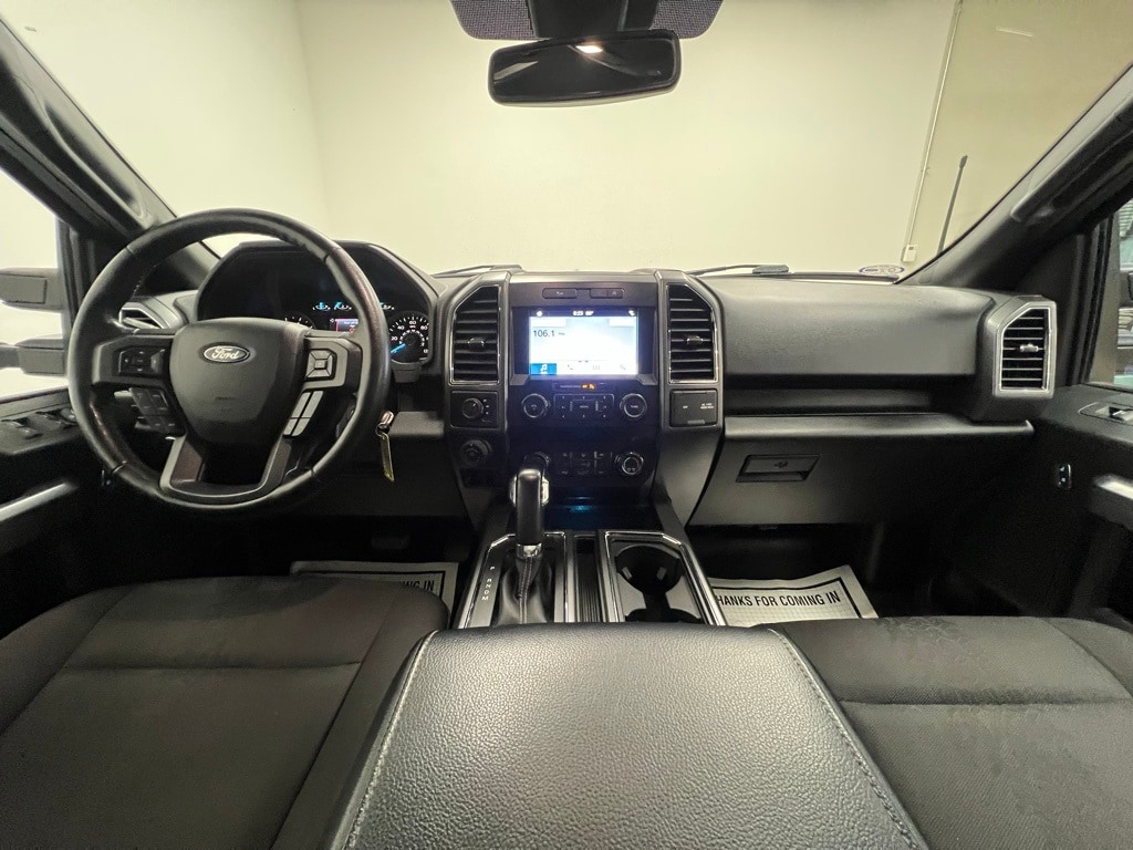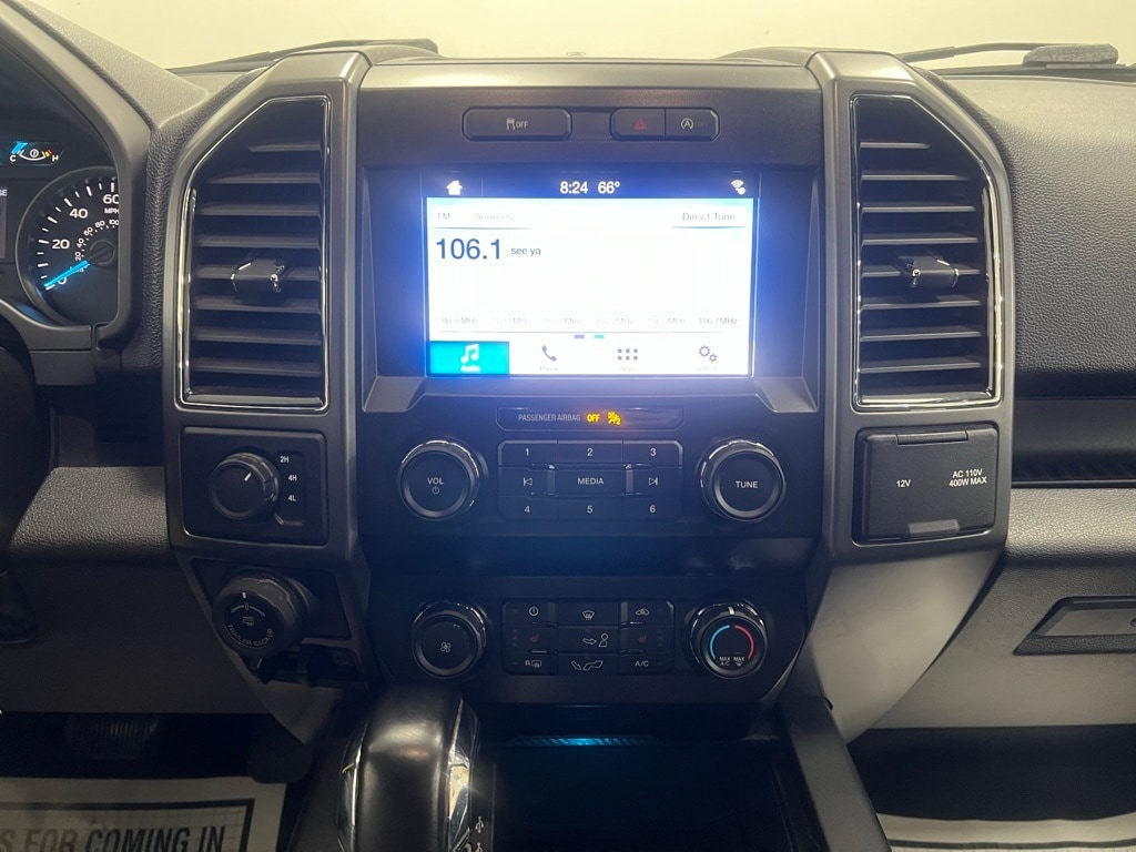 Ford F-150 Clean CARFAX, 4-Wheel Disc Brakes, 6 Speakers, ABS brakes, Air Conditioning, Alloy wheels, AM/FM radio, AppLink/Apple CarPlay and Android Auto, Auto High-beam Headlights, Brake assist, Bumpers: chrome, Compass, Delay-off headlights, Driver door bin, Driver vanity mirror, Dual front impact airbags, Dual front side impact airbags, Electronic Stability Control, Emergency communication system: SYNC 3 911 Assist, Exterior Parking Camera Rear, Front anti-roll bar, Front Center Armrest w/Storage, Front fog lights, Front wheel independent suspension, Fully automatic headlights, Illuminated entry, Low tire pressure warning, Occupant sensing airbag, Outside temperature display, Overhead airbag, Panic alarm, Passenger door bin, Passenger vanity mirror, Power door mirrors, Power steering, Power windows, Radio data system, Radio: AM/FM Stereo w/6 Speakers, Rear step bumper, Remote keyless entry, Security system, Speed control, Speed-sensing steering, Split folding rear seat, Steering wheel mounted audio controls, SYNC 3, Tachometer, Telescoping steering wheel, Tilt steering wheel, Traction control, Variably intermittent wipers, Voltmeter, Wheels: 17" Silver Painted Aluminum.