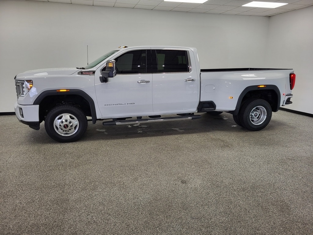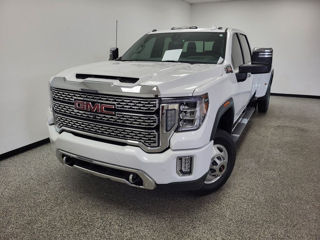 GMC Sierra 3500HD Local Trade, CARFAX One Owner, Clean CARFAX, 10-Way Power Driver Seat Adjuster w/Lumbar, 10-Way Power Passenger Seat Adjuster w/Lumbar, 12-Volt Rear Auxiliary Power Outlet, 120-Volt Bed Mounted Power Outlet, 120-Volt Instrument Panel Power Outlet, 2 USB Ports (First Row), 2 USB Ports Inside Console, 2-Speed Active Transfer Case, 220 Amp Alternator, 2nd Row Dual USB Charge-Only Ports, 4-Wheel Disc Brakes, 6" Rectangular Chromed Tubular Assist Steps, 7 Speakers, ABS brakes, Air Conditioning, Alloy wheels, AM/FM radio: SiriusXM with 360L, Apple CarPlay/Android Auto, Auto High-beam Headlights, Auto-dimming door mirrors, Auto-Dimming Inside Rearview Mirror w/Camera, Auto-dimming Rear-View mirror, Automatic Emergency Braking, Automatic temperature control, Bed View Camera w/2 Trailer Camera Provisions, Bose Premium 7 Speaker Sound System, Brake assist, Bumpers: body-color, Compass, Compass Located In Instrument Cluster, Deep-Tinted Glass, Delay-off headlights, Driver Alert Package I, Driver Alert Package II, Driver door bin, Driver Memory, Driver vanity mirror, Dual front impact airbags, Dual front side impact airbags, Electric Rear-Window Defogger, Electrical Lock Control Steering Column, Electronic Stability Control, Engine Block Heater, Exhaust Brake, Exterior Parking Camera Rear, Floor-Mounted Center Console, Following Distance Indicator, Forge Perforated Leather-Appointed Seat Trim, Forward Collision Alert, Front anti-roll bar, Front Bucket Seats, Front Center Armrest, Front Chrome Recovery Hooks, Front dual zone A/C, Front fog lights, Front reading lights, Front wheel independent suspension, Fully automatic headlights, Garage door transmitter, Genuine wood console insert, Genuine wood door panel insert, GMC Connected Access Capable, Gooseneck/5th Wheel Prep Package, HD Rear Vision Camera, HD Surround Vision w/2 Trailer View Camera Provisions, Heated door mirrors, Heated Driver & Front Outboard Passenger Seats, Heated front seats, Heated steering wheel, Heavy-Duty 80 Amp Battery, Hitch Guidance w/Hitch View, Illuminated entry, In-Vehicle Trailering System App, Integrated Trailer Brake Controller, IntelliBeam Automatic High Beam On/Off, Keyless Open & Start, Lane Change Alert w/Side Blind Zone Alert, Lane Departure Warning System, LED Cargo Area Lighting, Low tire pressure warning, Manual Tilt-Wheel/Telescoping Steering Column, Memory seat, Multicolor 15" Diagonal Head-Up Display, Navigation System, Not Equipped w/Front & Rear Park Assist, Not Equipped w/Heated 2nd Row Outboard Seats, Occupant sensing airbag, OnStar & GMC Connected Services Capable, Outside temperature display, Overhead airbag, Overhead console, Panic alarm, Passenger door bin, Passenger vanity mirror, Pickup Bed, Polished Exhaust Tip, Power Door Locks, Power door mirrors, Power driver seat, Power Front Passenger Windows w/Express Up/Down, Power Front Windows w/Driver Express Up/Down, Power passenger seat, Power Rear Windows w/Express Down, Power Sliding Rear Window w/Defogger, Power steering, Power windows, Preferred Equipment Group 5SA, Prem Front Floor Liners w/Removable Carpet Insert, Prem Rear Floor Liners w/Removable Carpet Insert, Premium audio system: Premium GMC Infotainment System, ProGrade Trailering System, Radio: AM/FM w/Prem GMC Infotainment System & Navi, Rear Cross Traffic Alert, Rear reading lights, Rear seat center armrest, Rear step bumper, Rear window defroster, Remote keyless entry, Remote Vehicle Starter System, Safety Alert Seat, Security system, Signature Denali Grille w/High Gloss Black Mesh, SiriusXM w/360L, Speed control, Speed-sensing steering, Split folding rear seat, Spray-On Pickup Bed Liner w/Denali Logo, Steering Wheel Audio Controls, Steering wheel mounted audio controls, Tachometer, Technology Package, Telescoping steering wheel, Tilt steering wheel, Traction control, Trip computer, Turn signal indicator mirrors, Unauthorized Entry Theft-Deterrent System, Universal Home Remote, Variably intermittent wipers