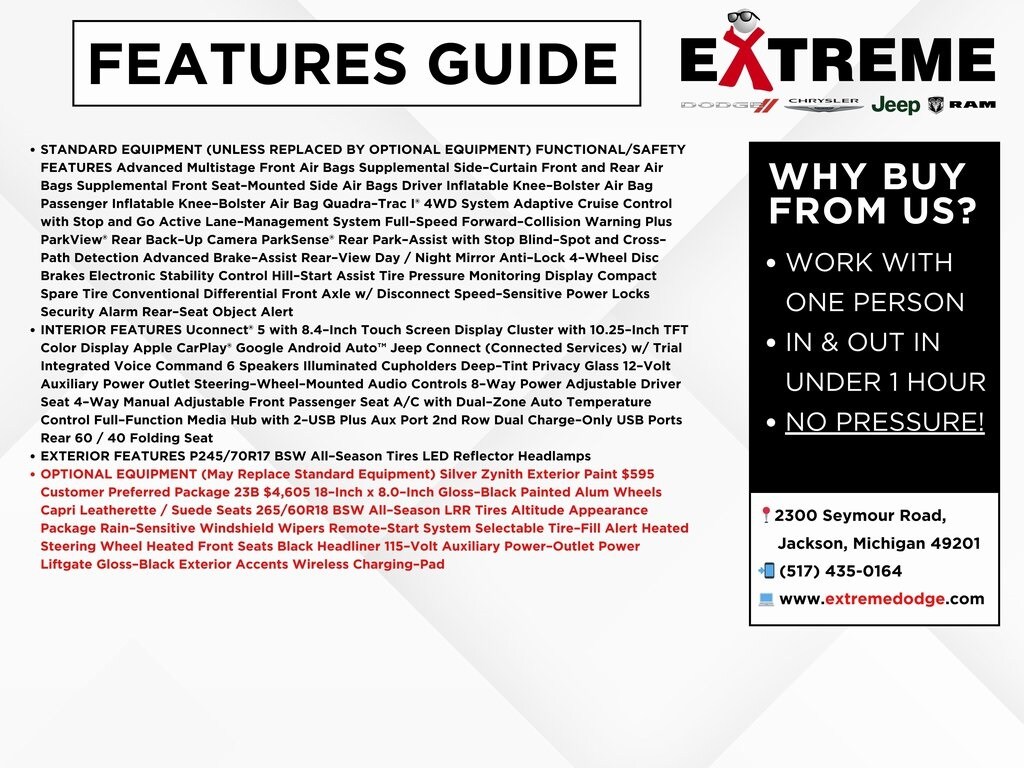 Extreme Dodge Chrysler Jeep is dedicated to your satisfaction before, during, and after your purchase. We'll go the extra mile to take care of you.