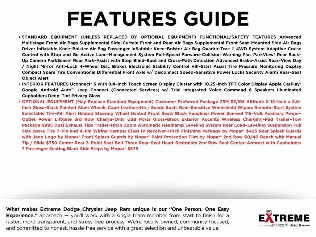 Extreme Dodge Chrysler Jeep is dedicated to your satisfaction before, during, and after your purchase. We'll go the extra mile to take care of you.