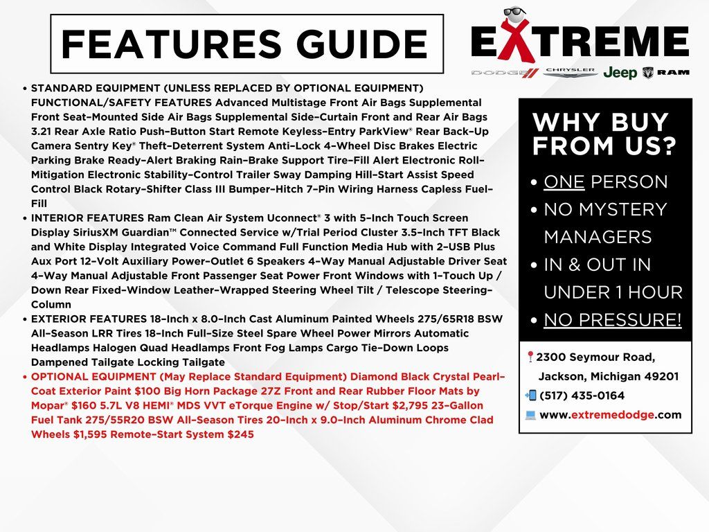 2022 Big Horn/Lone Star Diamond Black Crystal Pearlcoat 4WD 8-Speed Automatic HEMI 5.7L V8 Multi Displacement VVT