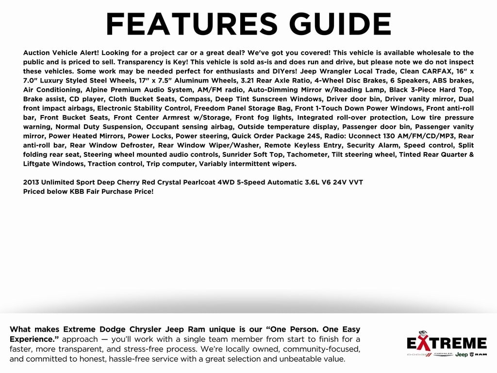 2013 Unlimited Sport Deep Cherry Red Crystal Pearlcoat 4WD 5-Speed Automatic 3.6L V6 24V VVT